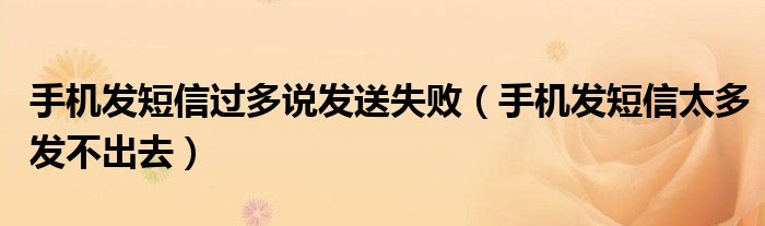 大家好,我是小科,我来为大家解答以上问题。手机发短信过多说发送失败,手机发短信太多发不出去很多人还不知道,现在让我们一起来看看吧!