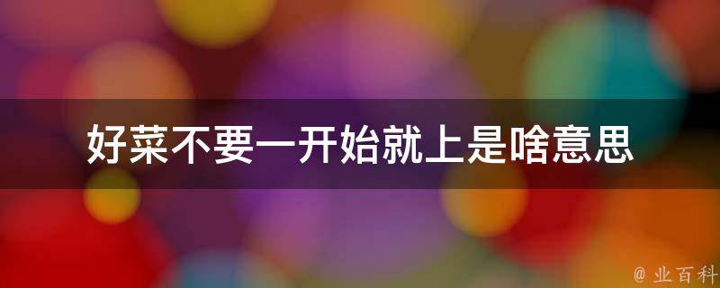好菜不要一开始就上的意思是:好的菜肴不应该一开始就全部端上桌,而是应该分批次、有计划地上菜,以保持食客对菜品的期待和兴趣。如果一开始就上所有的菜,那么后面的菜就没有机会引起食客的兴趣和惊喜了。