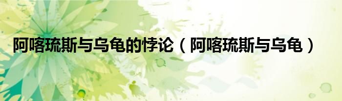 大家好,我是小科,我来为大家解答以上问题。阿喀琉斯与乌龟的悖论,阿喀琉斯与乌龟很多人还不知道,现在让我们一起来看看吧!