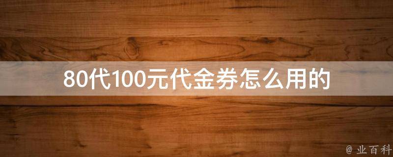 80代100元代金券的使用方法:用户出示代金券的核销码给工作人员核销。80代100元券是指用80元购买一张面值100的代金券,结账的时候抵扣100。通常代金券都有一定的使用期限,需要在规定的时间内使用完毕,过期无效。在使用代金券时,需要了解它的面值以及可抵扣的金额。