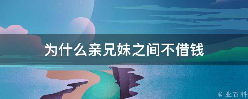 为什么亲兄妹之间不借钱