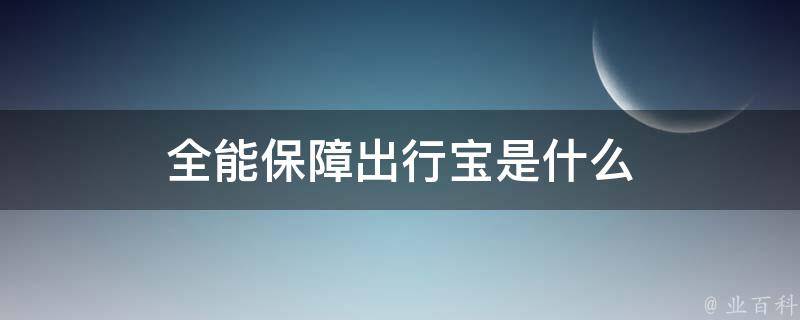 全能保障出行宝是一款航空保险产品,也叫做航空意外伤害保险,是以航空飞机旅行为保险标的的一种航空保险。这种保险通常涵盖了意外伤害、意外残疾、意外身故等保障,旨在为乘客提供全面的出行保障。
