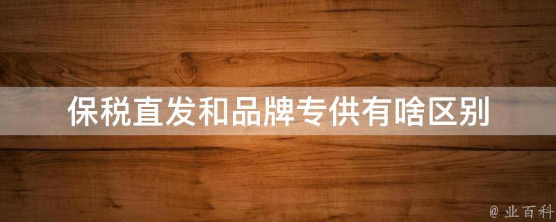 保税直发和品牌专供有啥区别