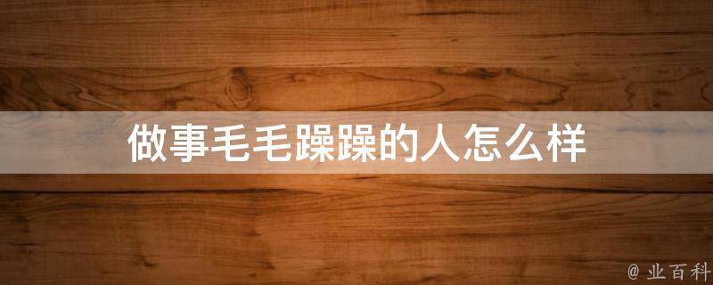 做事毛毛躁躁的人可能会给人留下不靠谱、不可靠的印象。这样的人可能缺乏耐心和细心,容易犯错或做出错误的决策,导致工作效率低下或对他人产生负面影响。此外,他们可能会表现出缺乏自我控制和自我管理能力,难以掌控自己的情绪和行为,容易冲动行事。