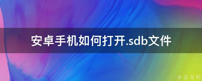1、使用文件传输工具:你可以使用手机和电脑之间的文件传输工具,如QQ、微信等,将.sdb文件从电脑传输到手机上。然后可以在手机上使用一些文件管理应用程序来查看和编辑该文件。