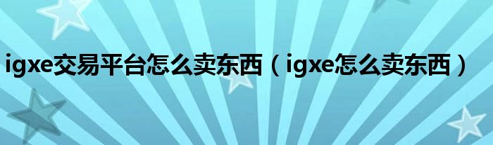 igxe交易平台怎么卖东西(igxe怎么卖东西)