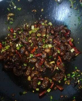 锅内放油,放入佐料、爆香放入爬蚱、撒料装盘即可。