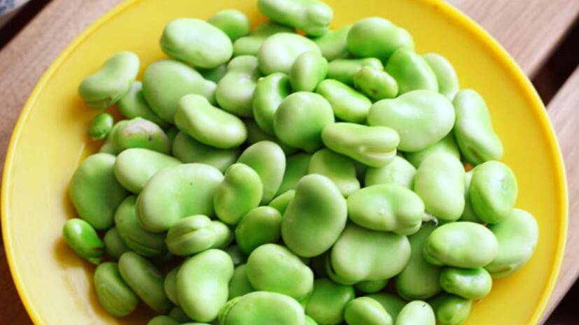 1、新鲜蚕豆剥去壳,冲洗一下备用。