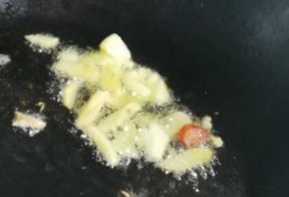 3.锅里倒油爆香姜蒜。