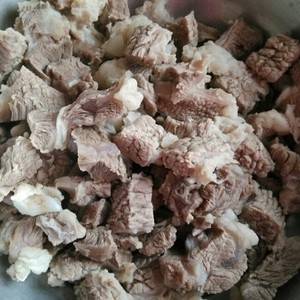 2、牛肉切块冷水下锅焯2分钟,用温水清洗干净。