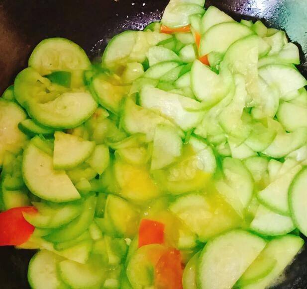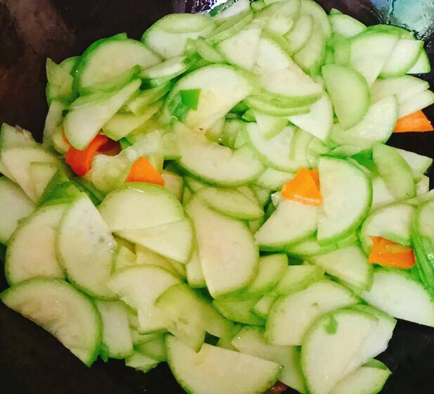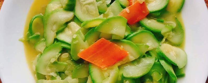 用料:角瓜2个、胡萝卜1根、葱1棵、蒜2颗、大豆色拉油15克、盐1克、生抽少许。