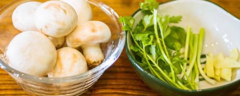 1、把口蘑根部切去,清洗干净后切片,切香菜、姜片、葱条。