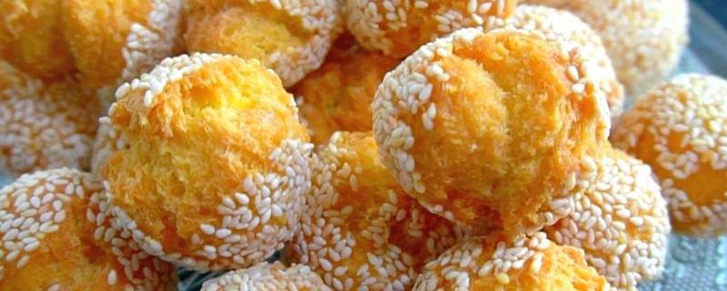 用料:低筋面粉300g、鸡蛋1个、白糖50g、植物油30g、泡打粉1.5g、食用碱面1g、白芝麻适量水80g、盐1g、小苏打1.5g。