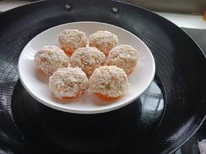 5、捏成肉丸子,然后将肉丸子裹上一圈糯米。
