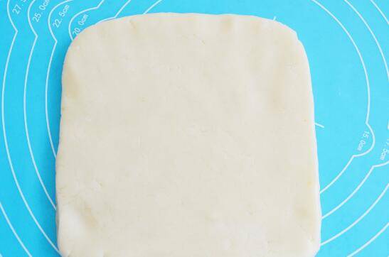 5、用擀面杖擀成1厘米厚的方形饼状。
