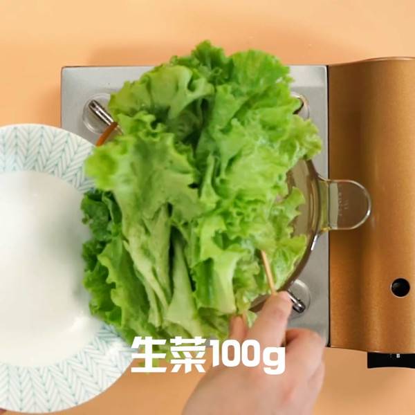 1、清水煮沸,放入生菜。