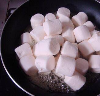 主料:黄油30克、棉花糖150克、奶粉100克。辅料:熟花生100克。