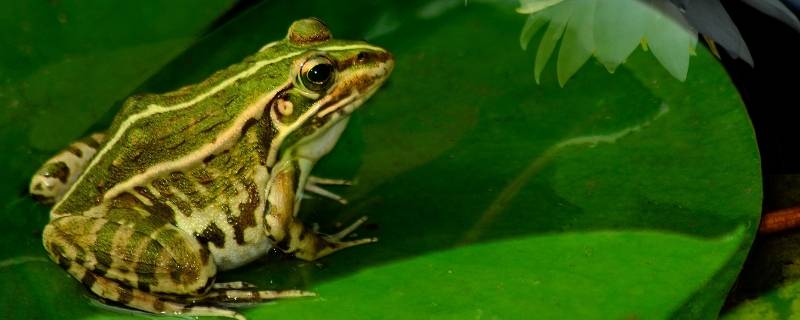 青蛙是脊索动物门、两栖纲、无尾目、蛙科的两栖类动物。成体无尾,卵产于水中,体外受精,孵化成蝌蚪,用鳃呼吸,经过变异,成体主要用肺呼吸,兼用皮肤呼吸。上颌有齿,通常有犁骨齿。肩带固胸型,椎体参差型,荐椎横突柱状;指趾末端二骨节间没有间介软骨。鼓膜明显隐于皮下,皮肤光滑或有疣粒。舌通常长椭圆形,后端大多具缺刻。