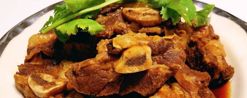 5、压好的牛肋排连汤水一起倒回炒锅里,煮开后加点生抽,加点老抽,加点冰糖,加点盐调味,等汁水收干时淋上香油即可。