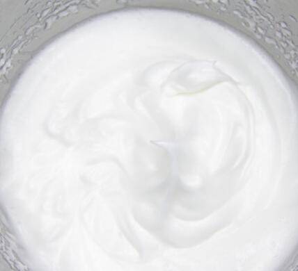 4、蛋白加入盐、柠檬汁搅拌,分三次加入糖,搅拌至湿性发泡。