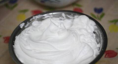5、蛋白中加入几滴白醋低速打成粗泡泡,加入白糖慢慢继续打,直至打到提起打蛋器,蛋白能拉出弯曲的尖角的时候就可以。