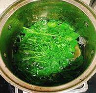 3、豆瓣菜下锅。水一开,豆瓣菜就熟了。