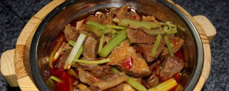 牛腩800克、芹菜100克、盐2克、孜然粉2克、茶籽油15克、生抽5克、辣椒粉5克、鸡精2克。
