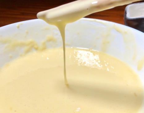 将面糊调至拿起筷子流下的面糊可成直线即可。