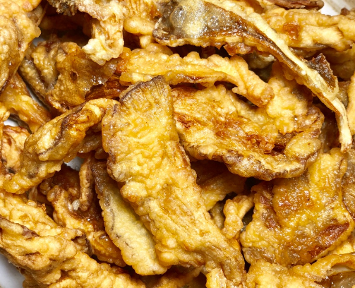 炸至金黄控油盛出,放置3分钟左右。开大火重新倒入油锅复炸,复炸过的平菇外壳更加酥脆。