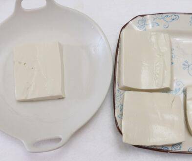 10、接着再放一片豆腐,铺上一层素馅。一层肉馅一层素馅直到最后一层。