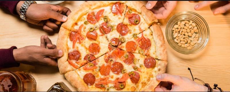 用刀叉吃披萨时要右手拿刀,左手拿叉。最好左手食指按住叉子,右手拇指与食指夹住刀柄与刀刃的结合处再切。要切一块吃一口、切一块吃一口。不能立马拿起刀叉就一阵乱切。