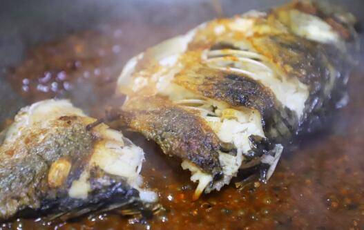 9、放入鱼,将酱汁浇在鱼身上,两面都覆盖上。