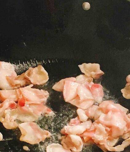 锅中热油,放入肉片翻炒。