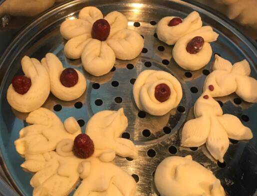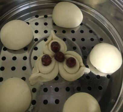 用料:面粉500克、糖3克、酵母5克、牛奶220克、水130克、红枣若干。