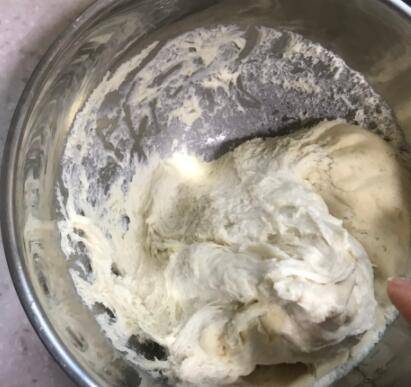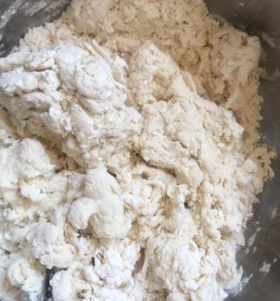 2、然后用手和成光滑的面团,和面的时候要做到盆光手光,不要浪费一滴粮食。
