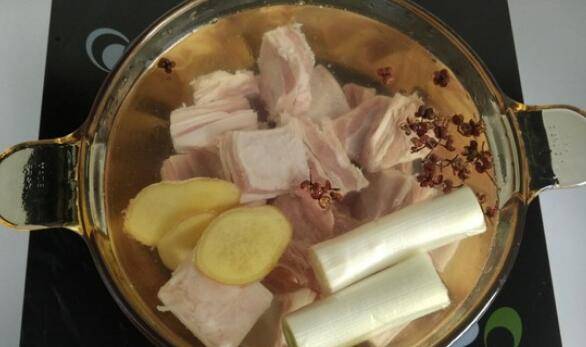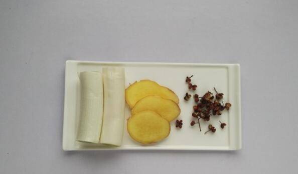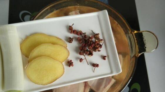 3、加入大葱、生姜和花椒。