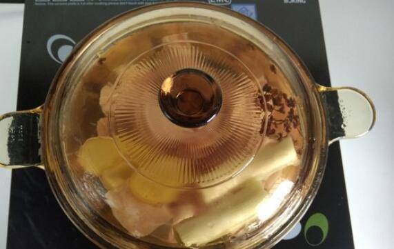 6、盖上锅盖重新炖煮,电磁炉火锅档900瓦的火力,小火慢炖1个小时以上,使得汤色变得浓稠、厚重。
