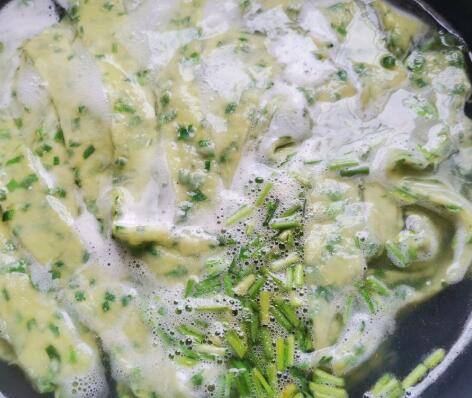 水开后加入调味好的韭菜段,煮两分钟左右,鸡蛋打散,倒入鸡蛋液,关火,出锅。