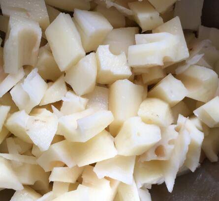藕去皮,藕切1厘米左右的丁,冲掉上面的淀粉。