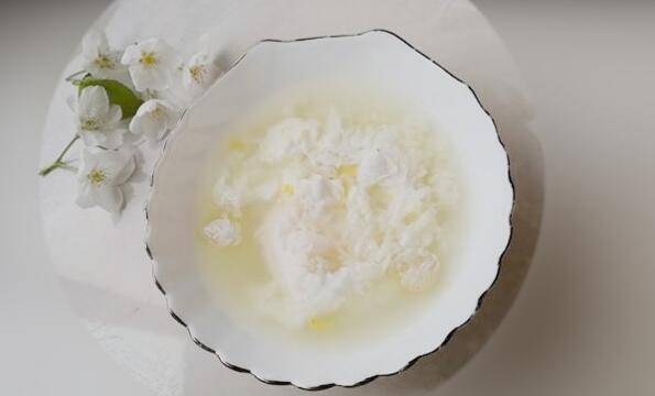 准备食材:酒酿、鸡蛋、樱花、白糖、水。