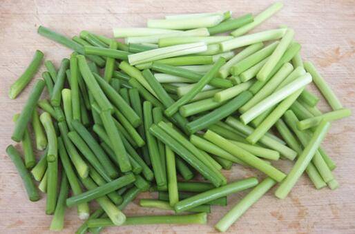 2、蒜苔摘洗干净、将蒜苔切成段。