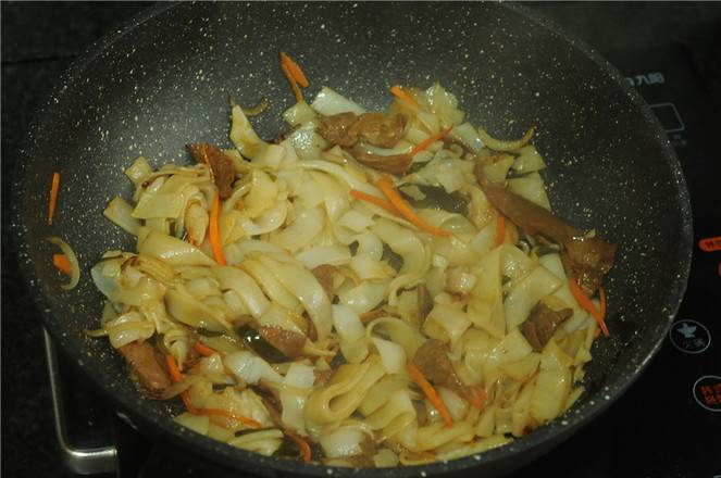 7、将河粉倒入锅里。