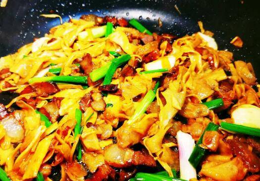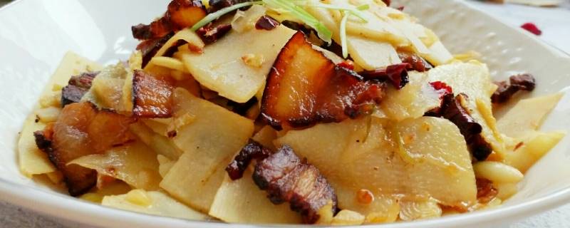 腊肉150克、笋片120克、蒜头4瓣、葱2根、姜1块、豆瓣酱1羹、生抽半羹。