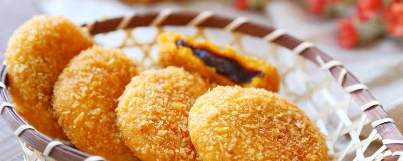 南瓜泥100克、糯米粉120克、绵白糖15克、鸡蛋1个、面包糠半碗。