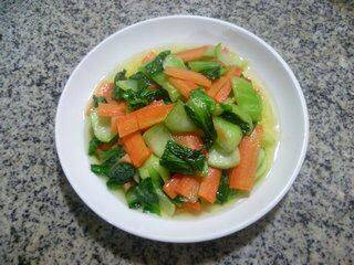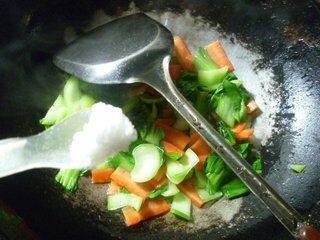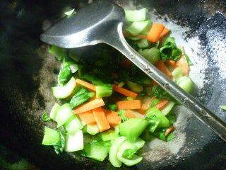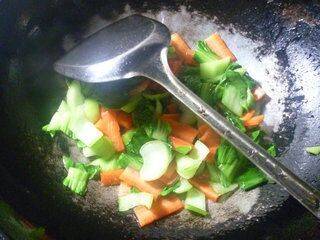 5、接着,合入切好的胡萝卜翻炒翻炒至断生。