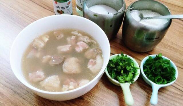 用料:羊肉700克、羊蝎子500克、生姜2块、小葱2根、食盐适量、白胡椒粉适量、白醋适量、香菜2根。