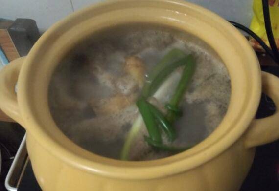 6、开锅后撇去浮沫,对羊肉比较敏感可以在这加入料酒。