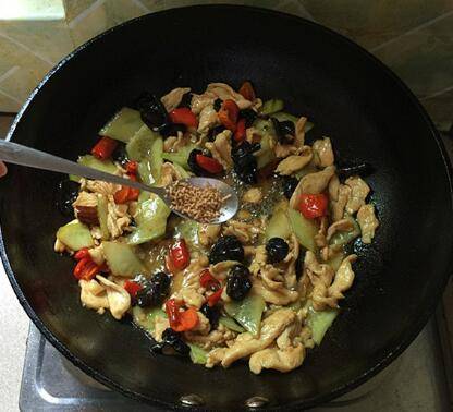 4、冷油下锅可以让鸡丁不变老的一个技巧。