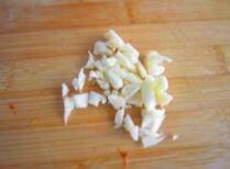 2、大蒜切细粒。