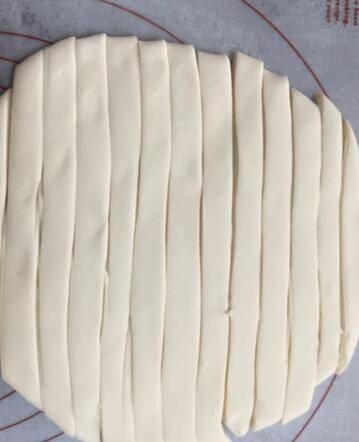 揉至表面光滑细腻,揉好的面团擀成一厘米左右厚的面皮,切成条状,也大概一厘米左右。